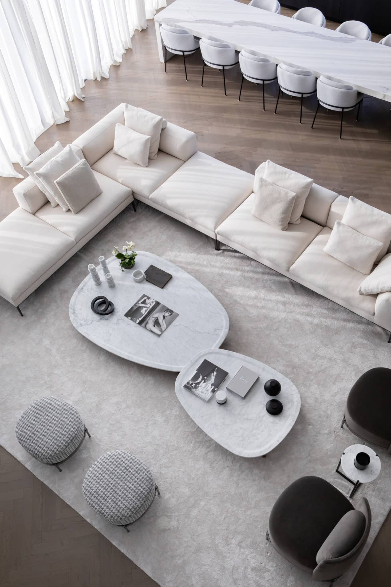 אנו גאים להציג את השטיח מקולקציית "פלאט ויסקוז" – יצירת מופת שתוכננה והוזמנה במיוחד עבור פרויקט זה. זהו לא סתם שטיח, זוהי אמירה עיצובית, מרכז הכובד הוויזואלי שמאחד את כל האלמנטים בחלל.