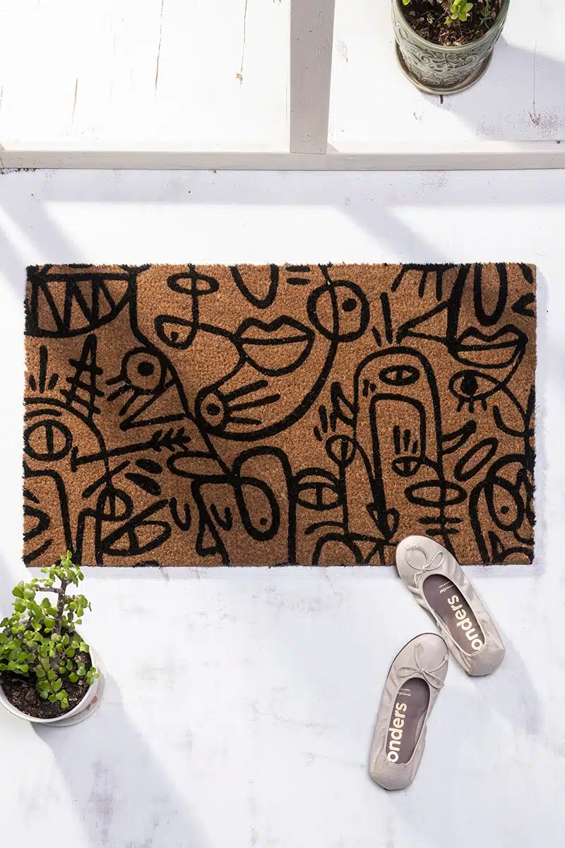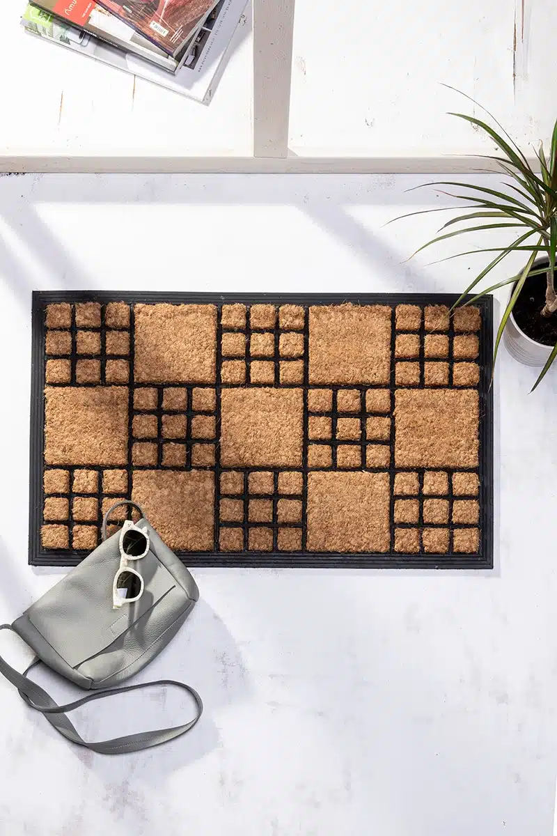 שטיח כניסה לבית הום Home שחור ורוד באתר צמר שטיחים יפים.